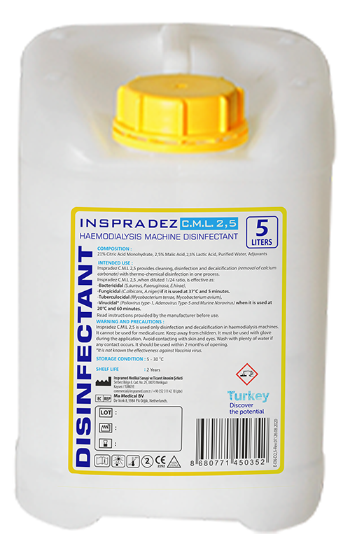 Inspradez C.M.L 2,5 cung cấp khả năng làm sạch, khử trùng và khử cặn (loại bỏ canxi cacbonat) bằng khử trùng nhiệt hóa học trong một quy